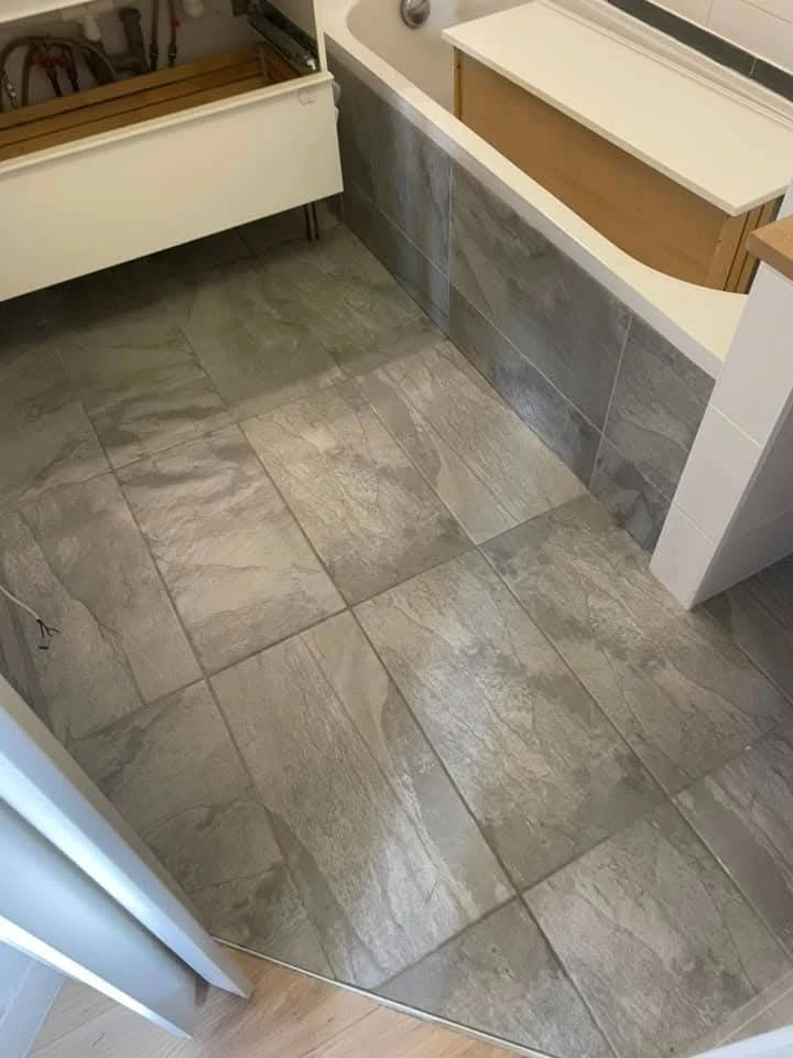 Carrelage gris entracte salle de bain